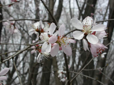 山上的桃花都开了,可惜因为调错了模式,出来的是黑白的,讲究了,想象一下吧