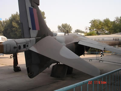 今天陪某人妹夫去他的母校北航参加校庆,顺便参观了航空博物馆,门票一块钱一个人,进入室外展厅,首先看到的居然是一架鹞式飞机,机翼上还有英国空军的徽记,我在北京呆了这么多年第一次知道北航还有架鹞式。